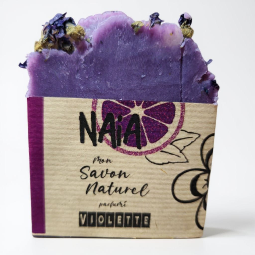 Savon artisanal surgras au parfum délicat de violette, sublimé par des micas scintillants. Douceur, élégance et éclat naturel.